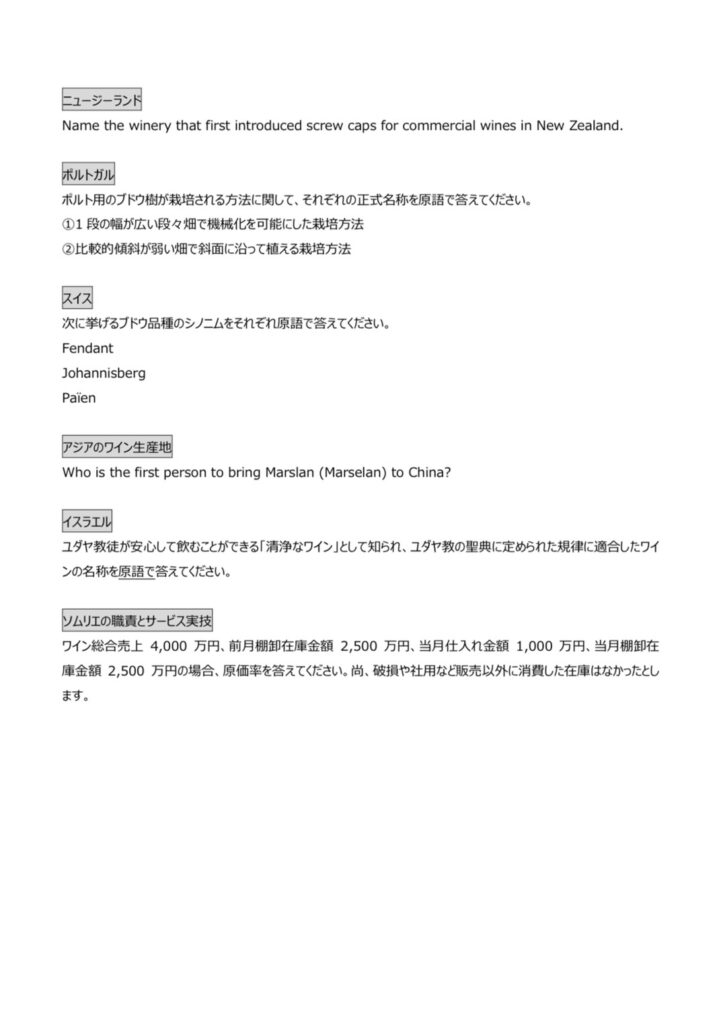 過去問(ソムリエ協会HPより)